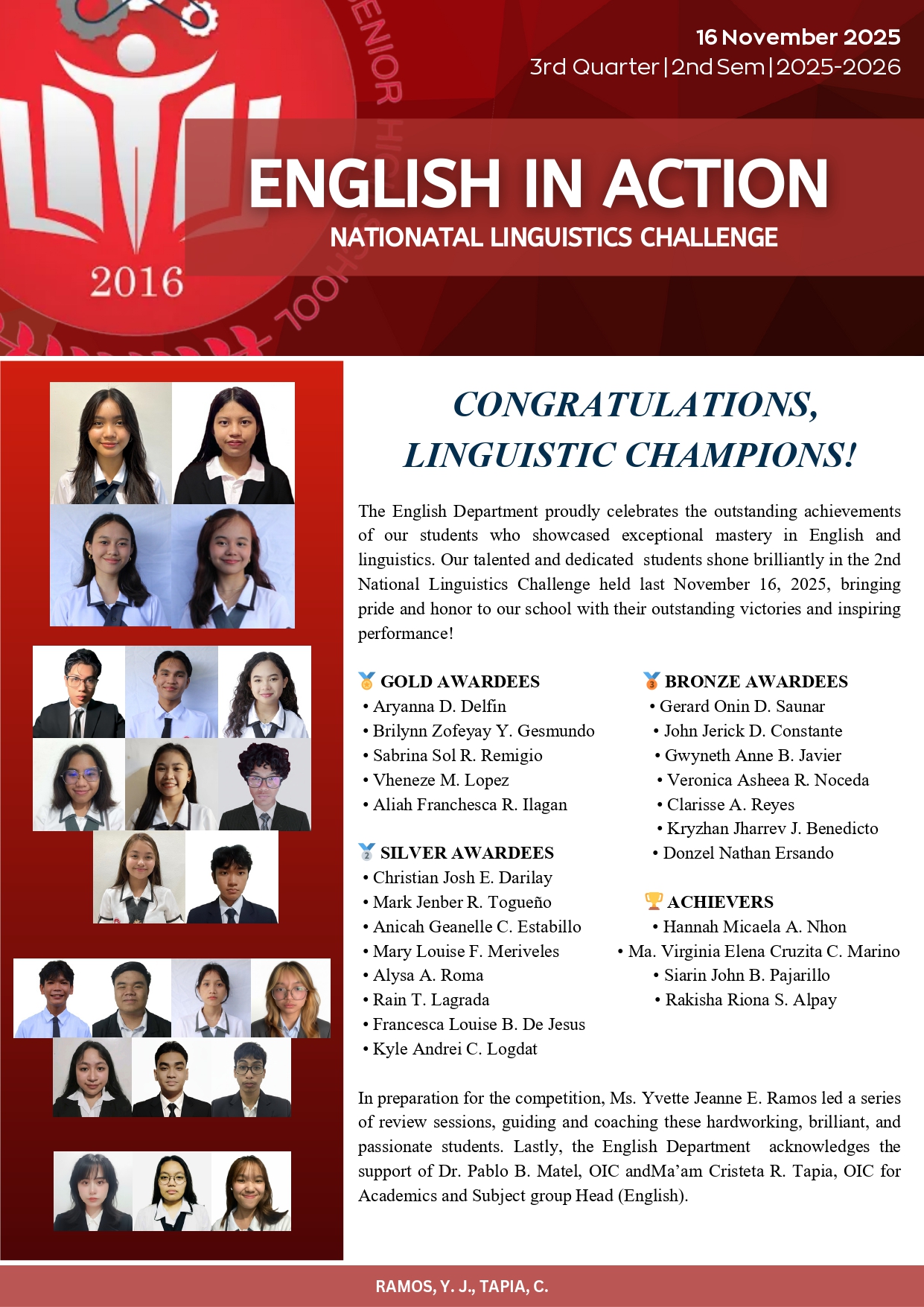 2nd National Linguistics Challenge held on November 16, 2025. Your hard work, dedication, and excellence in English and linguistics have brought pride and honor to our school!
